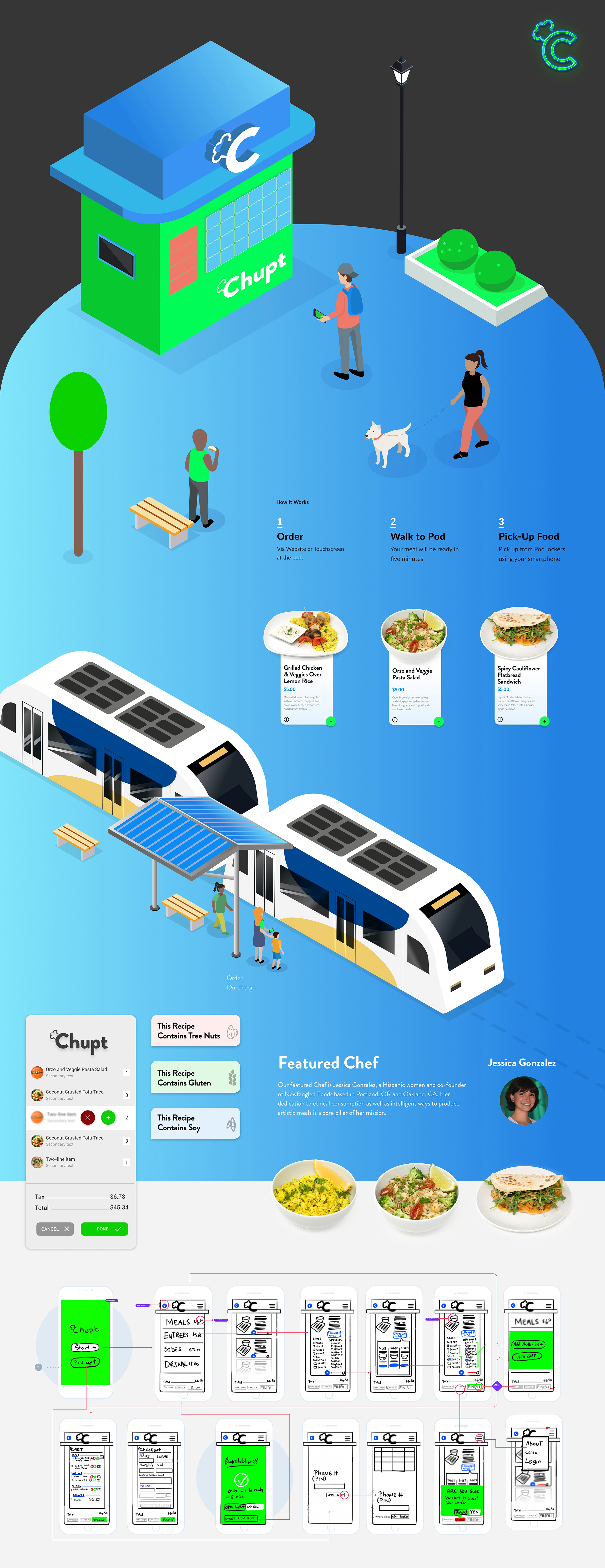 The resulting identity provided Chupt with a striking and cohesive brand foundation. By balancing a tech-forward aesthetic with inviting, food-centric visuals, the new branding successfully positioned Chupt as a modern, forward-thinking company ready to engage the Portland community and revolutionize how people access healthy, vegan meals on the go.